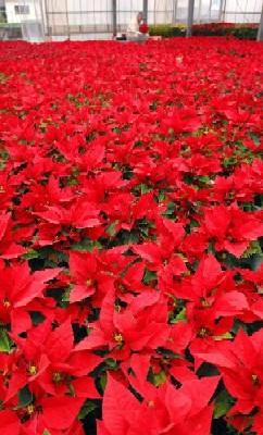 hoa Trạng Nguyên [Poinsettia] ở xứ sở mặt trời chuẩn bị cho lễ Noel. Năm nay, do thời tiết, hoa có lẽ sẽ nở sớm hơn thường niên một tuần, người ta phải điều chỉnh nhiệt độ nhà kính để hãm. (ảnh A.S., lời avq)