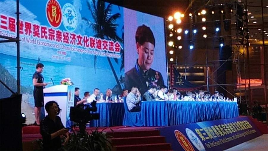 会议由海南联谊会莫壮才秘书长主持,世界莫氏总会莫添来主席、海南莫义广会长和莫海涛名誉会长分别在会上讲话,河北侨办、任丘市和琼海市副市长等领导也分别在大会上致词。