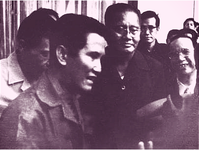 Ông Nguyễn Hữu Hạnh (trái) tại cuộc họp của Mặt trận Tổ quốc TP.HCM năm 1976 - Ảnh: LAM ĐIỀN chụp lại