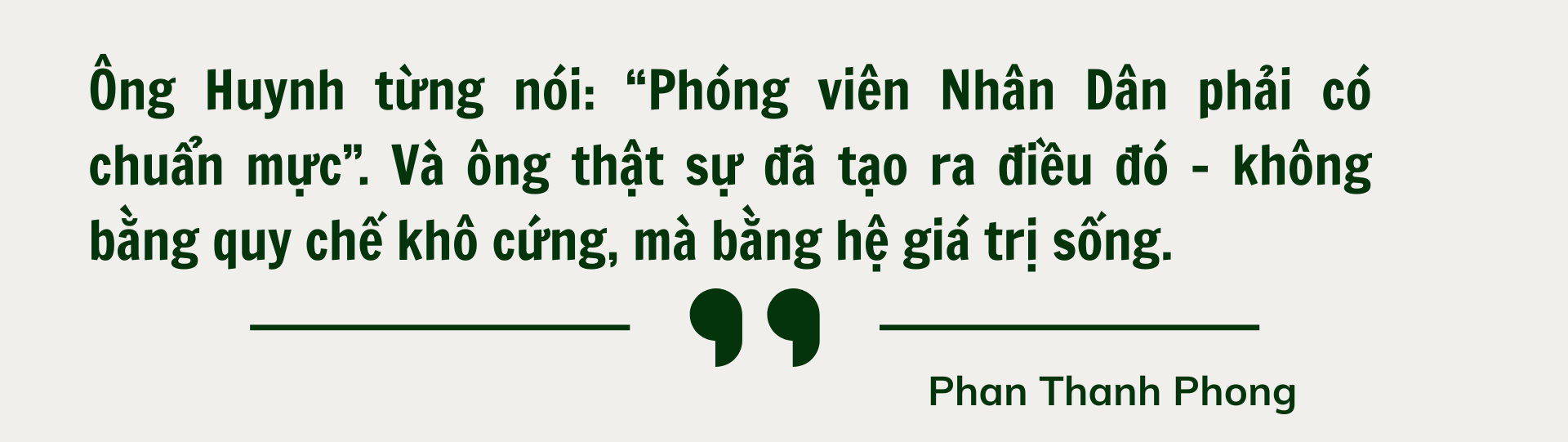 Ông Huynh từng nói: “Phóng viên Nhân Dân phải có chuẩn mực”. Và ông thật sự đã tạo ra điều đó - không bằng quy chế khô cứng, mà bằng hệ giá trị sống.