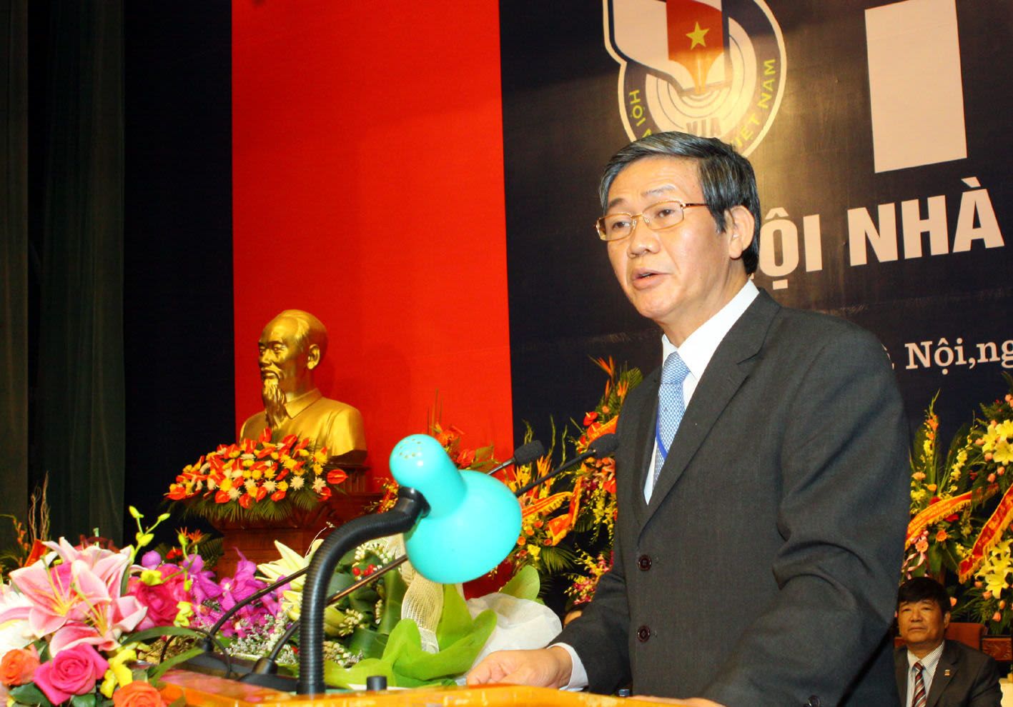 Đồng chí Đinh Thế Huynh phát biểu tại lễ bế mạc Đại hội đại biểu toàn quốc lần thứ IX Hội Nhà báo Việt Nam. Ảnh: Bích Ngọc - TTXVN